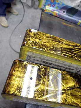 この作業は基本的に、ストライクポイントを硬い物でうたせるか、やわらかい物で打たせるか、それにより音色が変わるということです。
