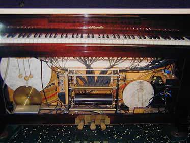 まさに凄いとしか言いようのないピアノです。内部は完璧に調整されていていつでも音出し可能です。デジタルな演奏はヤマハピアノプレーヤーでいいんですが、これはアナログのきわみでしょう。ピアノ演奏だけではなく見ても分かるようにシンバル、太鼓鉄琴と中にぎっしり詰まっています。鍵盤蓋がないのは弾く為に作られたのではなくて見せるために作られたため必要がないんです。このピアノのオーナーは