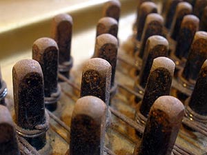 ダンパーフェルトのワイアーも緑青が出てさび付いている、1本1本手磨き