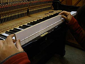 虫食いの鍵盤ブッシングクロスの交換作業。