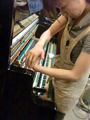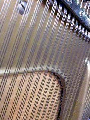 湿気のより動きが悪くなっているところもかなりあるのとハンマーが弦溝がつき硬く硬化してしまっているために素直な音ではない。カーンというシンの実に細い音と化している、この年数経っているBLはほとんど同様の症状になっている