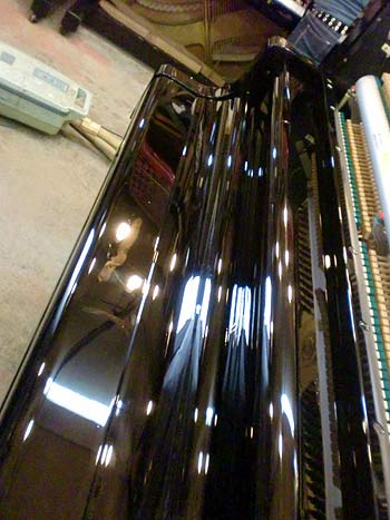 向かいにあるピアノのビニールカバーが映りこんでいる、そのぐらいピカピカになりました