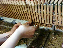 イースタインに限らずたいていのピアノは30〜40年を経過してくるとセンターピンのすべりが悪くなり音が出なくなる、これは使っていると何とか動くが使わなくなりそのままにしておくとどのピアノも交換することになる