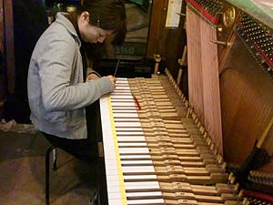 ハンマー整形、この剥きかたいかんで音色は生きるも死ぬも剥いた人間の責任は100%だ、素人が剥くとピアノとして到底使いものにならなくなってしまう、というくらいリアルでシビアな作業、