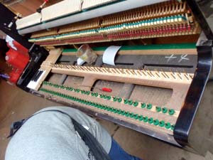 ピアノ本体を寝かし底板部分のとりはずし作業です