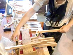 鍵盤削り込み作業。この作業で鍵盤の出来のレベルがわかる