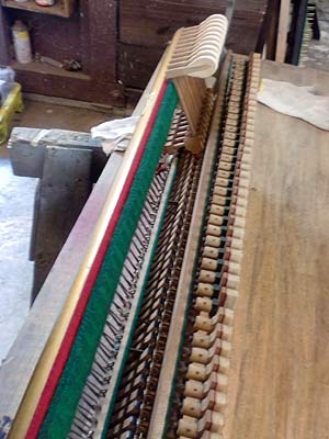 中音部のダンパーフェルトの硬化により音が止まりません、フェルトを交換