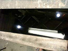 鍵盤の下にほこりこの部分に消音ユニットが設置される場所だ