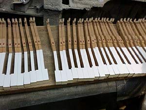 それを一枚一枚貼っていくのだが、結構手間なのだ、綺麗に貼るそして鍵盤を本体にもどす、だけではなく削り込み作業が一番大変なのだ、
