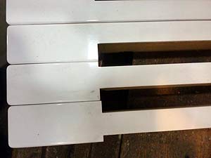 鍵盤上面につめ傷から汚れまできれいにバフをかけて鍵盤のクリーニング