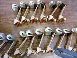それを一枚一枚貼っていくのだが、結構手間なのだ、綺麗に貼るそして鍵盤を本体にもどす、だけではなく削り込み作業が一番大変なのだ、