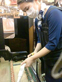 ヤマハU3Hの下前パネル磨き、ご存知担当はナベサン