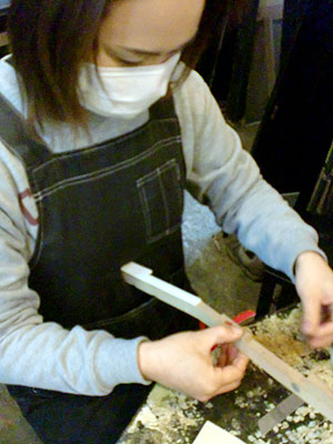 張り替えたフレンンジコードに整形されたハンマーを取り付けていきます