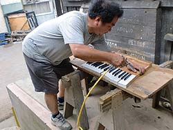 それを一枚一枚貼っていくのだが、結構手間なのだ、綺麗に貼るそして鍵盤を本体にもどす、だけではなく削り込み作業が一番大変なのだ、