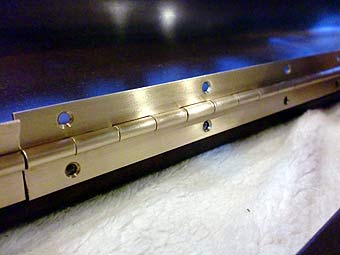 塗装されたヒンジを鍵盤ふたに取り付けていきます