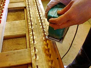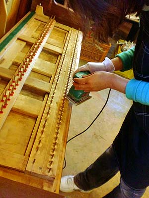 それを一枚一枚貼っていくのだが、結構手間なのだ、綺麗に貼るそして鍵盤を本体にもどす、だけではなく削り込み作業が一番大変なのだ、