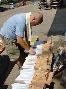 あまりの暑さで義治氏うれしそうですね、ペダル底板カビ〜しみで覆われてしまっています