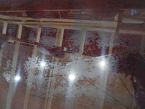 ピアノ下に挽いてあるインシュれーたーピアノの重さで穴が開いてしまっています