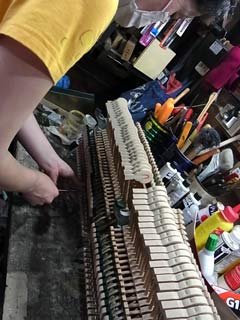 ハンマースティックの修理、この修理はとても大切、これぞ動かずしてピアノは音が出ない