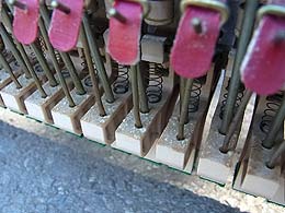 鍵盤上面のナラシ作業からのあわせから始まります、この整調、整調なくしてピアノは語れないというくらい