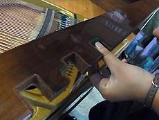 ピアノ下部分に当たる弦はぶつぶつとさびが発生、