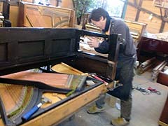 ピアの親板の接着はがれ、この年代のピアノに相当多い