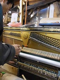 というのは弾き手にとって困るところなのだ、とりあえず動くようにしてみたもののすぐに動かなくなる、おそらく何度となくチョコ地チョコ直してきたのだろう、とりあえず動くようには、やはりとりあえずでしかなくなってくる、今回徹底的に直すというところで