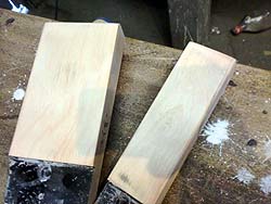 拍子木と鍵盤押さえ木目が生きるように塗装