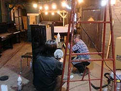 ピアノを寝かして底板の取り外し作業