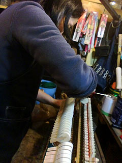 カイザーピアノの弦ピン磨き作業開始
