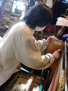 それを一枚一枚貼っていくのだが、結構手間なのだ、綺麗に貼るそして鍵盤を本体にもどす、だけではなく削り込み作業が一番大変なのだ、