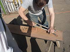 鍵盤際の加工作業