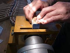 それを一枚一枚貼っていくのだが、結構手間なのだ、綺麗に貼るそして鍵盤を本体にもどす、だけではなく削り込み作業が一番大変なのだ、