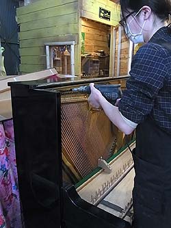 チューニングピン磨き作業