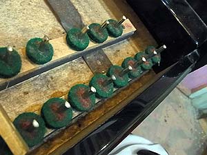 弦磨きこみ作業