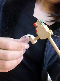フレンジコード1本1本手作業でループをつく張り込んでいきます