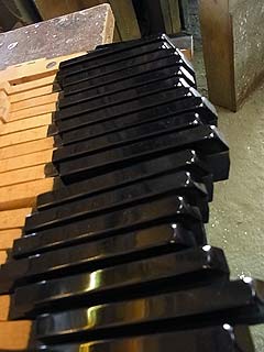 それを一枚一枚貼っていくのだが、結構手間なのだ、綺麗に貼るそして鍵盤を本体にもどす、だけではなく削り込み作業が一番大変なのだ、