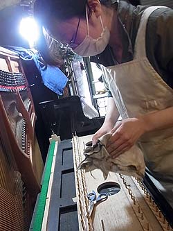 ピアノ真ん中ペダル弱音マフラーの貼りかえ
