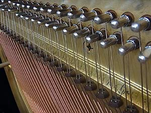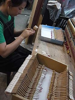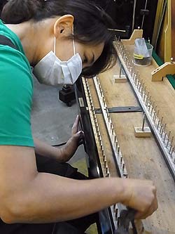 磨きといえども180本近いキーピンを1本1本丁寧に磨いていくんですね、鍵盤が入ればわからないところだけどここの磨きこみはとても大切なところ