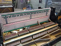 ブライドルテープも同様にハンマーの戻りを助ける役目を果たすところだ切れたりするとハンマーがリバウンドしてしまい演奏上で大きく影響が出てしまうところだ