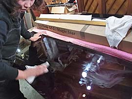 なべさんがしきりにこの曇りを何とか先にやりたいということで弦ピン磨きクリーニング