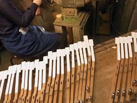 これから鍵盤上面についた細かい傷をとる作業に移ります