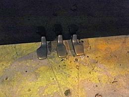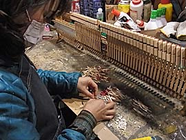 ハンマー整形、ハンマーをファイルするだけで音色は大きく変化する、下手な剥き方は音色は最悪となる