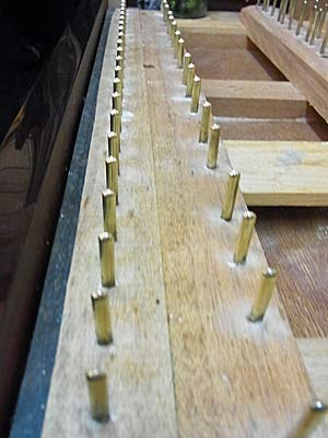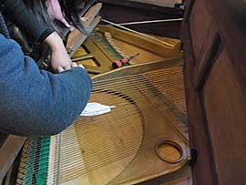 ピアノのヒンジは磨いた後塗装される、そうしないと数週間で変色してしまうのだ