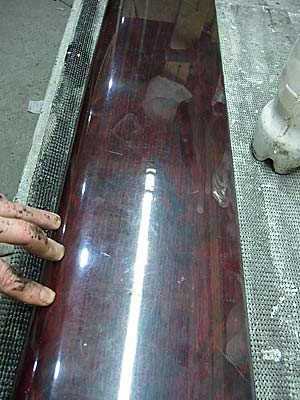 鍵盤バフがけ作業 鍵盤表面には無数の爪傷等がつく