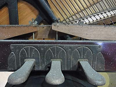 底板を分解してペダル窓クロスやフェルトを交換しなければならないのだ