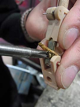 このコードはハンマーが飛び出し打弦した瞬間素早くバット部分を引き戻す役目のところだ。