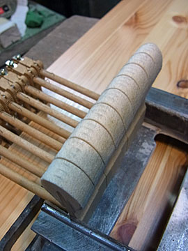 熱で貼りこんであるブッシングをはがします 張りこむブッシングはレンナー社製(ドイツ)のカシミヤブッシング