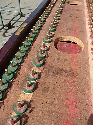 ピアノオーバーホールはわかりすくいうと弦ピン既存のものを捨てて