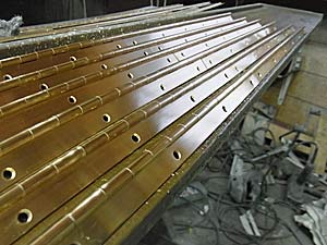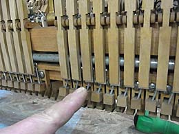 ここは鍵盤下位置にあるバランスキーピンとフロントキーピン鍵盤上下運動を制御するところ